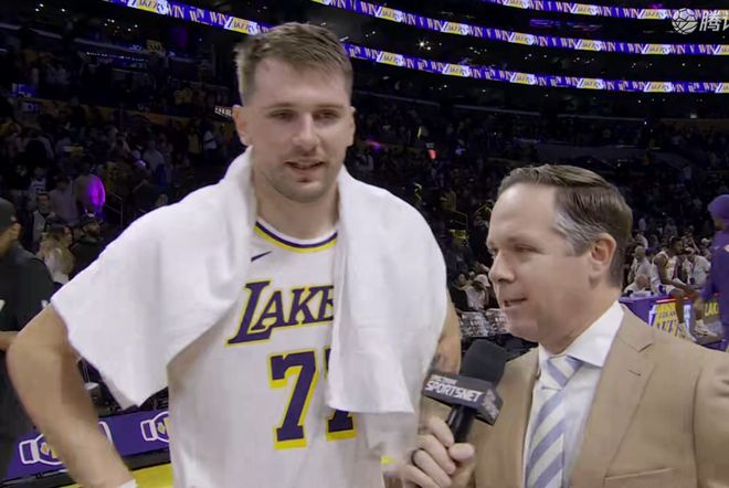 但是比赛不是看数据,或者看Excel看表格能够看出来的,你一定要看场上的表现,这场球布朗尼就打出了一个非常精彩的18分钟发挥,而且唯一的进球也让湖人主场的2万名观众为他欢呼沸腾。首先在第4节本来,双方的分差是110:114只差4分,此时湖人派出小阵容,东契奇、拉拉维亚、里夫斯,布朗尼和海斯,这是湖人专门祭出的一个超强小阵容。
