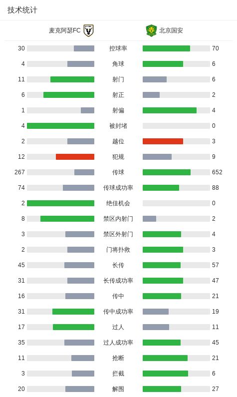 亚冠二级开局2轮仅1分,国安客场0-3麦克阿瑟FC,全队仅2次射正