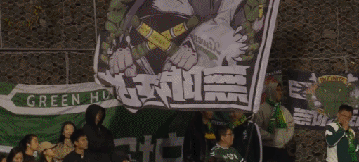 镜头给到客队看台,国安远征球迷现场助威